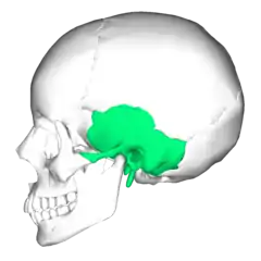 ![]() Hueso temporal. Es esta imagen no es visible el peñasco, por encontrarse en la cara interna. | ||