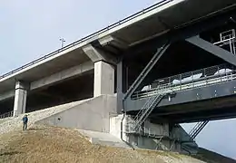 - Tablero del puente Øresund en la isla. El nivel inferior es para el ferrocarril y el superior para la carretera.