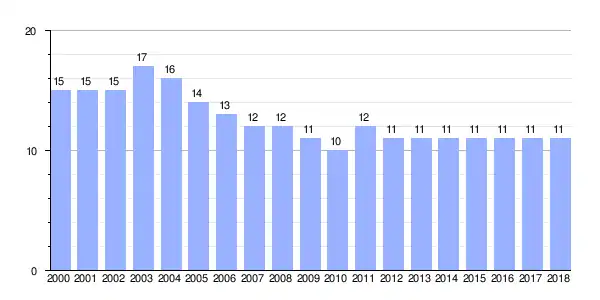 Gráfica de evolución demográfica de Peceñe entre 2000 y 2018 |