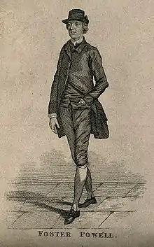 El primer exponente notable de esta caminata de larga distancia, en general se considera a Foster Powell (1734-1793), quien en 1773 recorrió 400 millas desde Londres a York y vuelta, y en 1788 caminó 100 millas (161 km) en 21 horas y 35 minutos.[3] Hacia finales del siglo XVIII, y especialmente con el crecimiento de la prensa popular, las hazañas de los viajes a pie a lo largo de grandes distancias —similares a una ultramaratón moderna— llamaron la atención y fueron etiquetadas como «pedestrianismo».