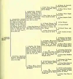 Árbol genealógico de Anselmo Freire creado utilizando la notación de Ahnentafel, una antigua forma de graficar genealogías.