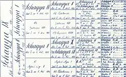 Ejemplo de registro de pedigrí de Shagya IX, un caballo de pura sangre francés. Año 1895.
