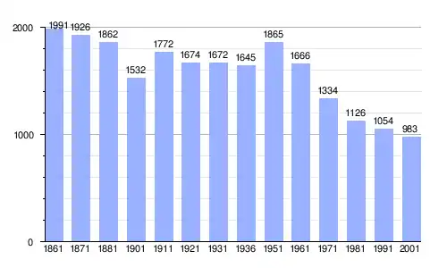 Gráfica de evolución demográfica de Pedivigliano entre 1861 y 2001 |