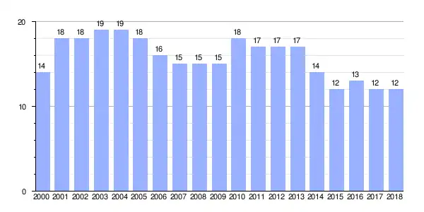 Gráfica de evolución demográfica de Pedral entre 2000 y 2018 |