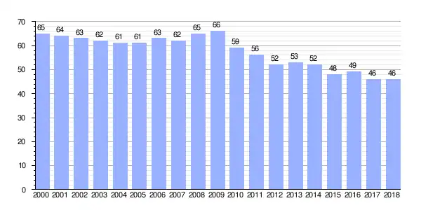 Gráfica de evolución demográfica de Pedramayor entre 2000 y 2018 |
