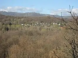 Debe su nombre al terreno sobre el que se asienta, ubicado en la ladera de una montaña, en un frondoso bosque que hace difícil su visión hasta que no se está próximo al pueblo.