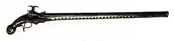 El pedreñal (también denominado pedrenyal catalán[1]) es un arma de fuego a manera de escopeta corta, empleada entre los siglos XVI y XVII principalmente en Cataluña,[2] que se disparaba con chispa de pedernal. Su funcionamiento era igual que el de los trabucos, aunque tenía la ventaja de que era más corto y más manejable. Dio origen al trabuco, al encaro y al trabuquete. Tenía un calibre intermedio entre el arcabuz y el pistolete.[3] A pesar de que su potencia era menor que la de otras armas de fuego de aquella época, era el arma preferida por los bandoleros,[4] ya que al ser un arma más corta, la podían esconder fácilmente bajo la capa y aproximarse a sus víctimas para amenazarlos e incluso matarlos. Antonio Romero discrepa en que los forajidos hicieran uso del pedreñal. Dice ser una confusión con el pistolete, y que el arma propia de los bandidos era el trabuco. Añade que en el en el capítulo 60 de la segunda parte de El Quijote se confunde el pedreñal con el pistolete.[3]