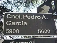 En homenaje a este prócer, la ciudad de Buenos Aires le rindió su homenaje imponiendo a unas de sus calles el nombre de «Coronel Pedro Andrés García». También llevan su nombre calles de las ciudades de San Antonio Oeste y Trelew, de la Patagonia Argentina.