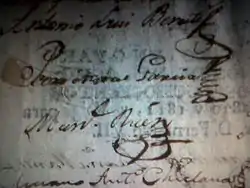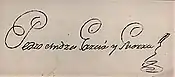 Detalle de la firma de Pedro Andrés García en el petitorio.