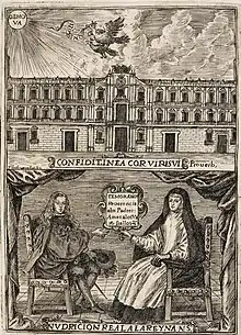 - Nudricion real: reglas o preceptos de como se ha de educar a los reyes mozos desde los siete a los catorce años: sacados de la vida y hechos de el santo rey Don Fernando Tercero de Castilla y formado de las leyes que ordenó en su vida y promulgó su hijo el rey D. Alonso. En Madrid, por Bernardo de Villa-Diego, 1671. Portada con orla tipográfica y hoja de grabado firmado por Pedro de Obregón dividido en dos recuadros horizontales: el Real Alcázar de Madrid con el emblema del águila volando en dirección al sol llevando en sus garras a su cría en la imagen superior, y la reina gobernadora Mariana de Austria con tocas de viuda transmitiendo a su hijo el rey Carlos II las reglas del buen gobierno: «Temor a Dios: Reverencia a los Padres: Amor a los Vasallos», en la mitad inferior.