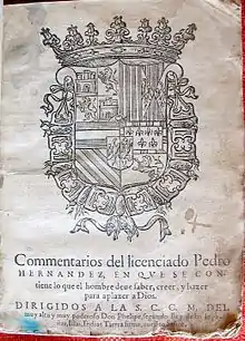- — (1566). Martínez, Sebastián, ed. Commentarios del licenciado Pedro Hernandez : en que se contiene lo que el hombre debe saber, creer y hacer para aplacer a Dios. Valladolid. OCLC 776502073.