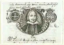 ![]() Retrato de Pedro Núñez de Guzmán y Niño, conde de Villumbrosa. Fotografía del dibujo que figura en el manuscrito 940 149 de la Biblioteca Nacional de España. | ||