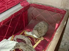 Su cuerpo momificado descansa bajo el coro de la nave principal de la iglesia de Santa María de Miranda de Ebro desde 1812.