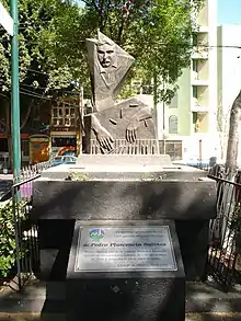 ![]() Escultura en memoria a Plascencia ubicada en un parque con su nombre en Ciudad de México. | ||