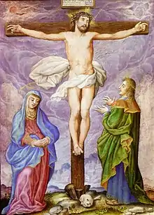 ![]() Calvario, miniatura firmada P. EZPELETA F. AN: 1596. Londres, colección particular. | ||