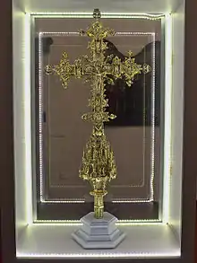 - Cruz de la Colegiata de Osuna (Sevilla).[2] Fue donada a esta institución por Juan Téllez-Girón, el Santo (IV Conde de Ureña) en 1535.[3]