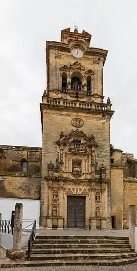 Pero su obra más emblemática en la capital es la Iglesia de San Roque, llevada a cabo entre 1759 y 1763, de interior de tres naves separadas por columnas de orden toscano y color rojo. Esta iglesia presenta un interior donde resaltan los efectos de luces creados por los lunetos de su nave central sobre el intenso molduraje de sus cornisas, y una sencilla portada donde figuran los tradicionales símbolos catedralicios de la Giralda entre dos jarras de azucenas. También es muy significativa su torre, adosada en un lateral de su fachada principal, donde se muestra la impronta característica del diseño del artista, con un cuerpo de campanas con un hueco por cada cara flanqueado por parejas de columnas toscanas sobre pedestales, y en el cual destaca la decoración de azulejería en color azul y los remates cerámicos.