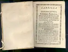 - El nombre completo es Cartilla pharmaceutica, chimico-galenica. En la cual se trata de los Canones de Mesue, y algunas definiciones chimicas, para utilidad de la juventud.