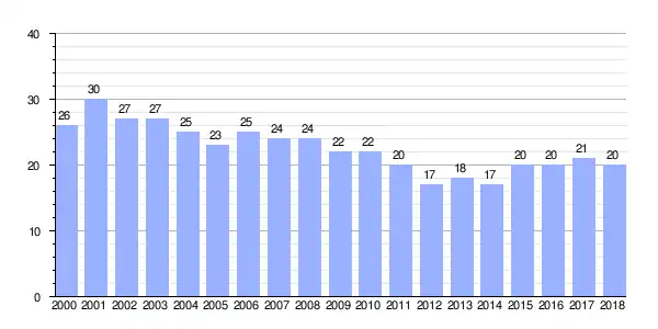 Gráfica de evolución demográfica de Pegariños entre 2000 y 2018 |