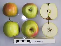 ![]() La variedad de manzana 'Peggy's Pride' con secciones cruzadas. | ||