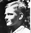 Hitler Youth hairstyle | El Hitler Youth hairstyle es un tipo de peinado habitualmente masculino que se caracteriza por presentar una gradiente en el corte lateral (denominada undercut) que frecuentemente se acompaña de un flequillo barrido que cubre parcialmente la frente. El peinado recibe su nombre del programa alemán de adiestramiento nazi, Juventudes Hitlerianas (inglés: Hitler Youth), peinado que era reglamentario entre los formados masculinos dentro del movimiento político. El peinado experimentaría un resurgimiento en su popularidad en los años 2010.[36] |