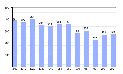Gráfica de evolución demográfica de Peleas de Abajo entre 1900 y 2021 |