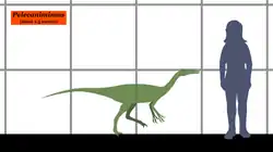 Tamaño estimado de Pelecanimimus, comparado con un humano.