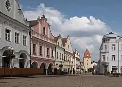 Pelhřimov, vista en la calle: Palackého