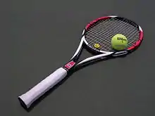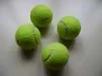 Una pelota de tenis es un objeto esférico de pequeño diámetro (especialmente en comparación con la medida de otras pelotas) que se utiliza en la práctica del deporte homónimo. Para impulsarla se utiliza una raqueta. Un profesional puede hacer que llegue a coger una velocidad de 263 km/h. Se recubre con fieltro (en general de color amarillo fluorescente con rayas de separación blancas), puesto que es el «color más visible por el ojo humano» y permite una trayectoria más correcta, en comparación con una totalmente lisa.[1] De media, una pelota de tenis pesa de 56 a 58 gramos.[2][3]
