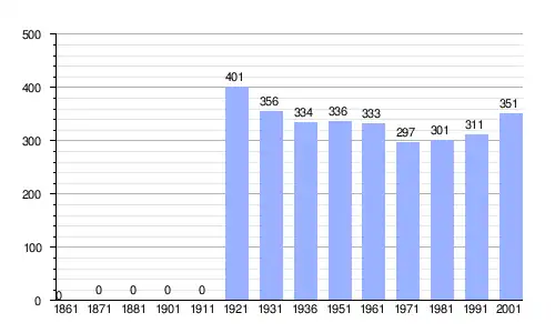Gráfica de evolución demográfica de Pelugo entre 1861 y 2001 |