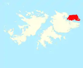 Su istmo (que la distingue del resto de la isla) se encuentra al sur de Puerto Soledad y al norte de la península de Freycinet. El promontorio Lamadrid conforma su extremo norte y la punta Voluntario su extremo este. Otros asentamientos del lugar son Puerto Johnson y Rincón Grande y entre las varias lagunas que posee se destacan la laguna Voluntario y la laguna del Holandés. Además, es la menor de las tres penínsulas de la isla Soledad.[3][1]