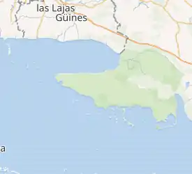 Enmarcada entre las estribaciones de la Ensenada de la Broa al sur y el Golfo de Batabanó al este. Al norte del golfo de Cazones. Y bordeando por el norte con la Carretera Central de Cuba.