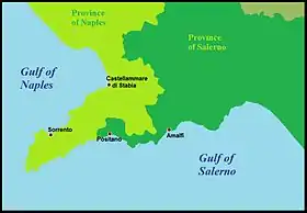 Subdivisión | Ciudad metropolitana de Nápoles y Provincia de Salerno | |