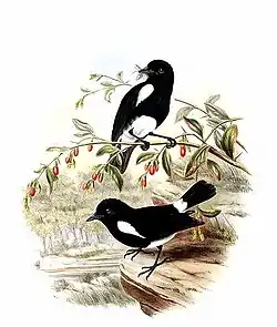 La petroica culiblanca (Peneothello bimaculata)[2] es una especie de ave paseriforme de la familia Petroicidae endémica de Nueva Guinea.