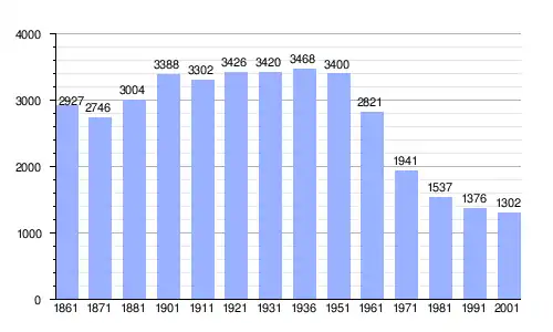 Gráfica de evolución demográfica de Penna San Giovanni entre 1861 y 2001 |