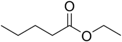 El Pentanoato de etilo es un compuesto químico en forma de éster del pentol. Se trata de un líquido con aromas que recuerdan a manzanas.[3] Se trata de un líquido incoloro que posee una baja solubilidad en agua, mientras que en otros solventes orgánicos posee una relativa solubilidad.