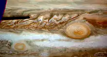 La Pequeña Mancha Roja es una enorme tormenta en la atmósfera de Júpiter, que apareció en 2006 junto a la Gran Mancha Roja.