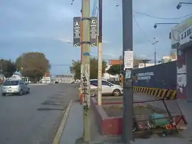 Se accede al plataforma mediante una rampa. La parada incluye carteles informativos sobre el servicio y la combinaciones posibles. La parada no está cubierta, cuenta con asientos de hormigón y posee rampas para facilitar la subida. Es una de las estaciones con más aglomeración de gente debido a la gran cantidad de ramales que circulan y por estar en pleno centro de la ciudad.
