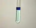 - peróxido de cromo(VI) estabilizado en fase de éter (arriba) y de cromo(III) solución acuosa (a continuación).