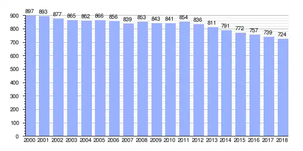 Gráfica de evolución demográfica de Pereiriña entre 2000 y 2018 |