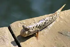 - Esta obra contiene una traducción derivada de «Periophthalmus argentilineatus» de Wikipedia en catalán, publicada por sus editores bajo la Licencia de documentación libre de GNU y la Licencia Creative Commons Atribución-CompartirIgual 3.0 Unported.