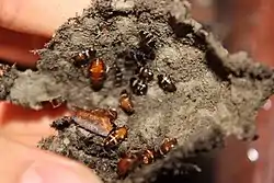 ![]() Una cucaracha café ahumada (Periplaneta fuliginosa) hembra con ooteca. | ||