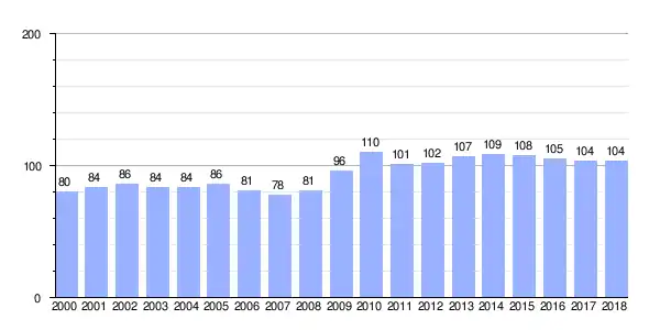 Gráfica de evolución demográfica de Perros entre 2000 y 2018 |
