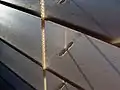 - Mediante cuerda que enrolla la persiana por su centro y se ata en un lateral de la ventana.