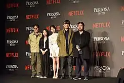 ![]() Protagonistas de Persona en un evento de Netflix. | ||