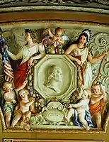 - Detalle de un fresco de 1855-1856 de Constantino Brumidi en el Capitolio de los Estados Unidos en Washington, DC, Columbia (izquierda) y una aparición tardía de la princesa india