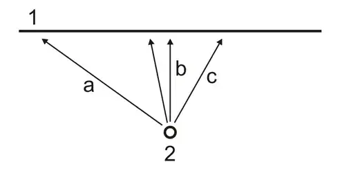 ![]() La Figura 1 muestra la pared (1) y el observador (2) vistos desde arriba |