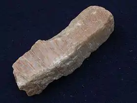 Crecimiento antipertítico de vetas de feldespato potásico intercaladas con vetas de feldespato sódico.