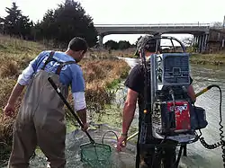En ríos chilenos se han empleado, entre otros, los aparatos Smith Root LR-24 DC,[11] EFKO,[12][13] Halltech HT-2000,[14] etc.