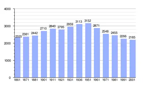 Gráfica de evolución demográfica de Pesco Sannita entre 1861 y 2001 |